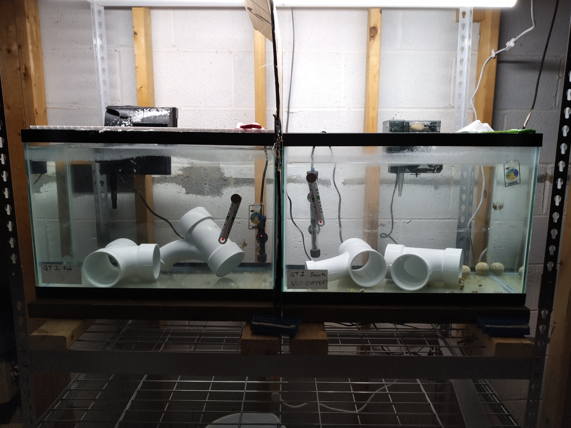 - Quarantine water brought to 1.0 ppm copper (tested with a Hanna high range copper test kit).